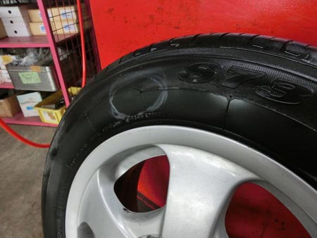 パンク ポスト 2013年10月20日 先程、お客様から「パンク? 空気漏れているから見て」と言われまして、 確認させて頂いたところ、側面のパンクでした。 側面のパンクですと修理ができなくなってしまいます。 お客様にご説明させて頂き、新品タイヤに交換させて頂きました。 タイヤも消耗品とは言えども、日頃のチェックが大切ですね。 タイヤの状態&空気圧チェック、ナットの増し締めは無料でしておりますので!!
