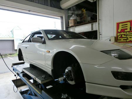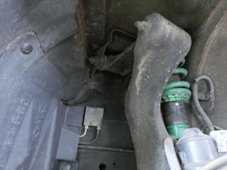 画像にあるショックのアッパーマウントをいじってキャンバーを