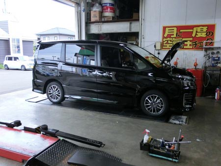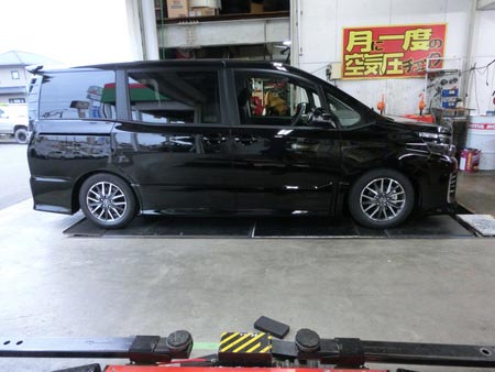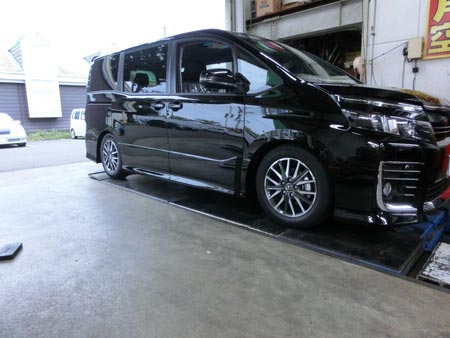 NEW VOXY RSR ベストI ポスト 2014年7月18日 ディーラーさんからの外注でNEW VOXY にRSR ベストI 車高調の取り付けいたしました。車高も標準の車高より10mmほどダウンし前後約-40mmです。アライメントもして納車です。ありがとうございました。