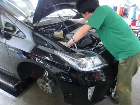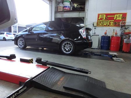 プリウスにダウンサスを組み込みました。