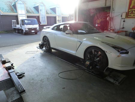 ついに 35GTR ポスト 2014年10月6日 本日はついにうちの店に35GTRがきました。アライメント調整をお願いされディーラーからデータをいただき作業いたしました。なかなか見れない車両なのでじっくり見学してから作業をし納車しました。