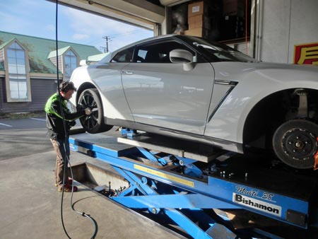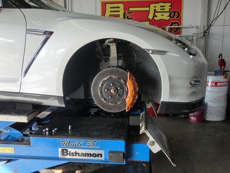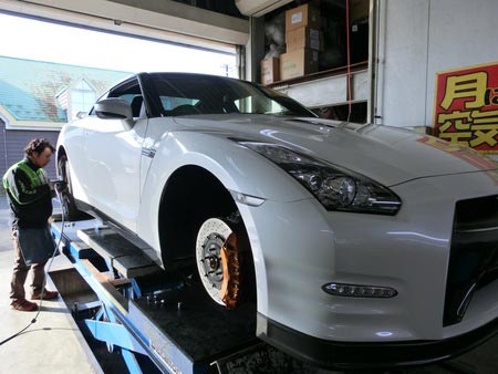 今回はタイヤ交換 ポスト 2014年12月16日 2ヶ月前からタイヤ注文をいただいていたニッサン 35GTRランフラットスタッドレスタイヤ交換いたしました。とにかくめったに触ることない車両なのでビビリながら作業いたしました。とにかくローター、キャリパーがでかい!!ホイールは20インチなのに軽い!!やはりスポーツカーいろいろないいパーツを使っていて高級車なんだと実感しながら作業いたしました。無事に終わって一安心。