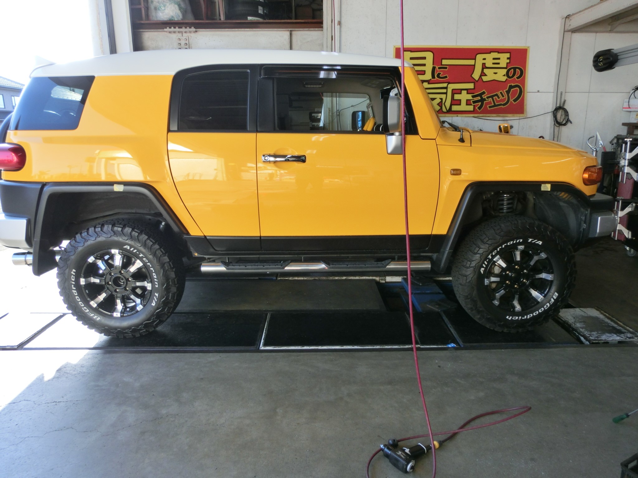 FJクルーザー リフトアップ ポスト 2020年5月25日 コロナも気になりますが 本日はFJクルーザーのリフトアップでした。 すでに、リフトUPはしてあるのですが!! ど~してもフロント下がりが気になるらしく お客様が新規一転 バネ&ショック&ラテラルロット&デフダウンKIT で取付&アライメント調整をさせて頂きました。 お客様もフロント下がりも解消されて満足されていました。 この度は有難う御座いました。