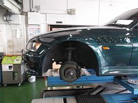 今日は前回付けて失敗してしまったので変換アダプターを付けて挑戦! しかし!!変換アダプターを間にかまして取付をしたところ長すぎて、、、 加工が必要になりました。 加工中! 加工終了!加工後最初より短くなり、、、 取付してジャストの長さでとてもよくなりました!(^^♪