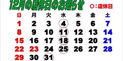 水曜日は定休日です。