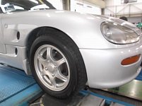 いつもありがとうございます! I様のカプチーノ スタッドレスタイヤに交換して、 アライメント調整を!! スタッドレス用の純正ホイールは4枚すべて塗り直しを!! ありがとうございました♪