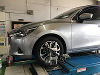 お車の健康診断はいかがですか?? アライメント測定で足回りの診断を 本日は マツダ デミオの測定実施です。