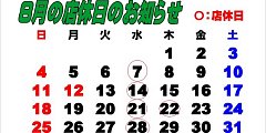 | 日 | 月 | 火 | 水 | 木 | 金 | 土 |