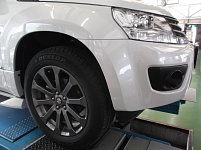 スズキ エスクードに タイヤ&ホイールセットを!! こちらのエスクードに!! ブリヂストン デューラーA/T001 と エコフォルムCRS131 を!! 一気にオフロード感が増すセットですね!! こちらのタイヤですが、店長が愛車に装着してますが意外と静かでオフロードもしっかり走れるとの事でした。(...