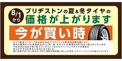 ブリヂストンタイヤ、値上がり前の今月がお得です!! 御来店、お待ちしております♪