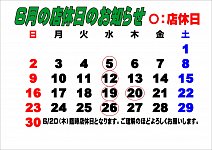 19・20日は定休日となっております。