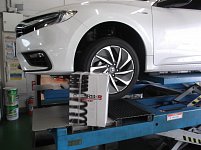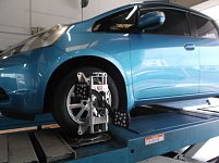 雨がすごく降りだしましたね~~~ 僕のジェイドも雨に濡れて大変です「::」 同じHondaのフィットのお客様のタイヤ交換とアライメント調整をさせていただきました~~ ありがとうございます! 当店は100km点検を行っておりますのでアフターケアも安心です!またお待ちしております