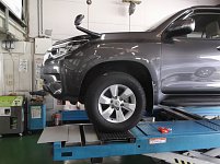 トヨタ ランドクルーザープラド にスタッドレスタイヤの取り付けです! こちらのお車に、 ブリヂストン ブリザック DM-V2 と グランヴァードSV のセットを!! 冬仕様もよりカッコよく!! 本日はありがとうございました♪