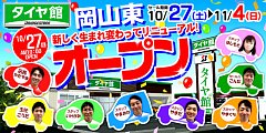 27日(土)~ 新しく生まれ変わったタイヤ館岡山東店へ皆様、ご来店お待ちしております♪