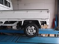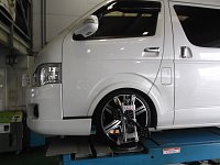 トヨタ ハイエース アライメント調整のご依頼です!! フロントの車高を少し上げられたので調整させていただきました!! 本日はありがとうございます♪