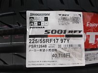 タイヤ交換ありがとうございます。 ブリヂストン ポテンザS001 RFT。 ランフラットタイヤとなります! 日産 スカイラインの純正ホイールですが 純正 空気圧センサーがついております。こちらが装着されているのでパンクしたら知らせてくれます! ランフラットタイヤ、ありがとうございました。