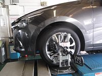 アライメント調整ありがとうございます! マツダ デミオ。 今シーズン装着していただいたスタッドレスタイヤが若干、内減りしておりましたので 測定! 数値にズレがありましたので調整実施。 本日はありがとうございました!