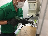 トイレの手拭きペーパー台が落ちたのを 若い時にバイト経験豊富な山岡君がドリル片手に補修! 壁の奥に受けが無いのでネジ止めしても意味が無くて壁奥にネジ受けを取付け中! そして、 完成☆ 頑張ってくれました!