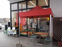 台風、岡山に上陸するんでしょうか?? 念のために店頭の片づけを皆で!! テント撤去。 看板も片づけて。 帰って家の対策もやっときます!! 皆様も十分、注意して下さいね。
