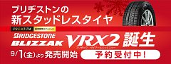 9月1日より販売開始。 ブリヂストン スタッドレスタイヤ ブリザック VRX2!! 詳しくは店頭にて。