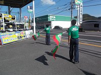 本日も暑い一日でした。台風の影響か風は少しありましたが・・・ こんな暑い中、ご来店誠にありがとうございました♪ 当店も出社メンバー全員で交代の旗振りを実施しました!! 店長・八幡木コンビですね~~ 僕も精一杯振りましたよ~~!(^^)! 午後台風対策で看板の撤去!! 台風の上陸が無ければ良...