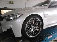 K様のBMW M4です。 ハイパワーな素晴らしいお車ですが、雪道・凍結路面を走行しようと思うと・・・ やはりスタッドレスタイヤは必要となります! 今回はクロークサービスでお預かりしているスタッドレスタイヤに脱着です。 毎回思いますが、ブレーキキャリパーが前後ともビック!! リアキャリパー...