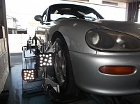 スズキ カプチーノのアライメント調整です。 スタッドレスタイヤに交換されタイヤの接地面積等も変わる為、アライメントでしっかり タイヤ偏摩耗の予防です。 夏タイヤと比べるとスタッドレスタイヤは少し割高感があります!長く使用して頂く為にも アライメント調整は効果があると思います!!