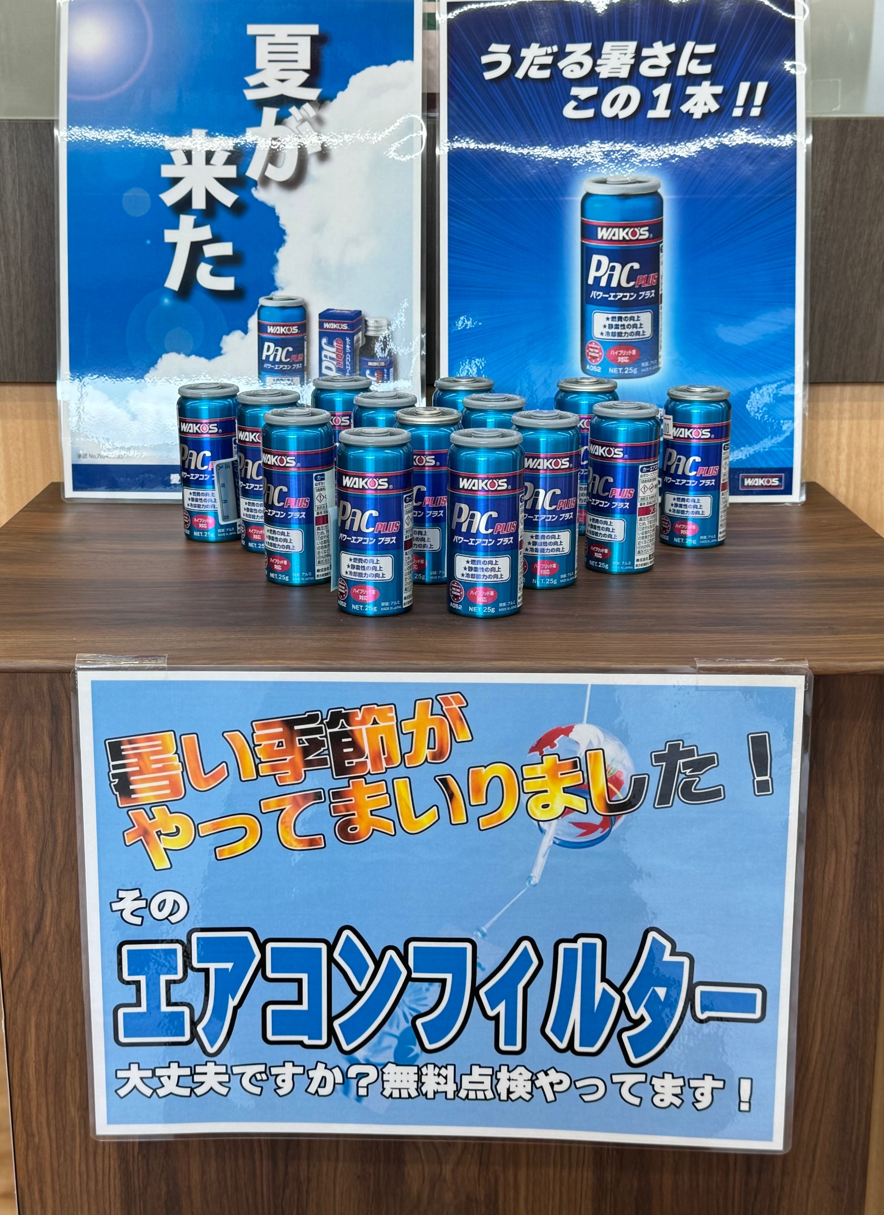 岡山市中区高屋にあります、タイヤ館岡山東店です!!いつもご利用ありがとうございます^ ^♪ 今年もかなり暑くなってまいりました!!エアコン大活躍の季節到来です!!! 大好評エアコン添加剤ワコーズパワーエアコンプラスが今月も堂々の入荷です^ ^♪ お求め、気になる方は是非当店スタッフまでお...