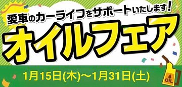 ★オイルフェア開催★1月15日から31日までエンジンオイル20パーセントOFF!!