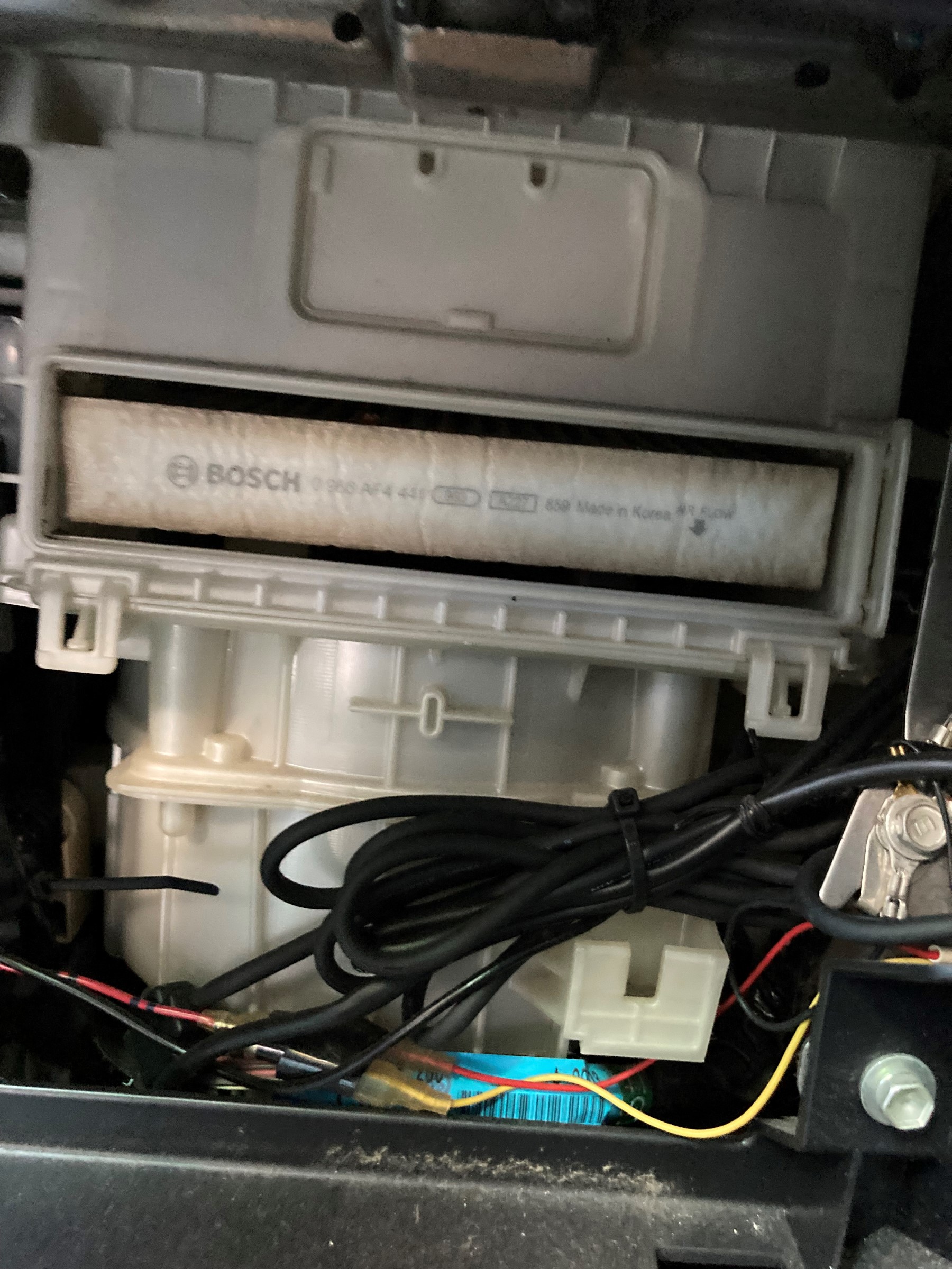 まずは、グローブボックスを取り外し、エアコンフィルターのカバーを外し取り出せるようにします!