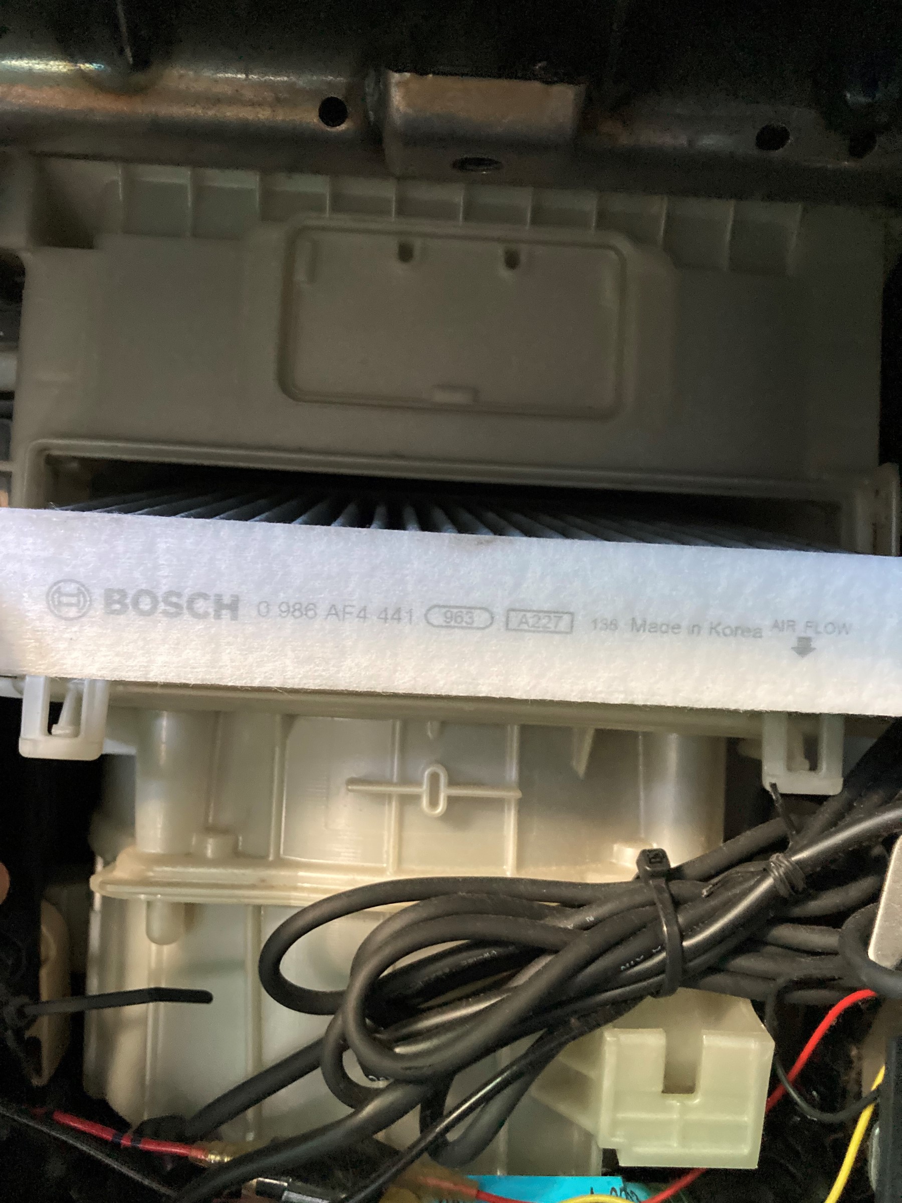 基本的には、助手席のグローブボックスを外した奥にエアコンフィルターが設置されています。