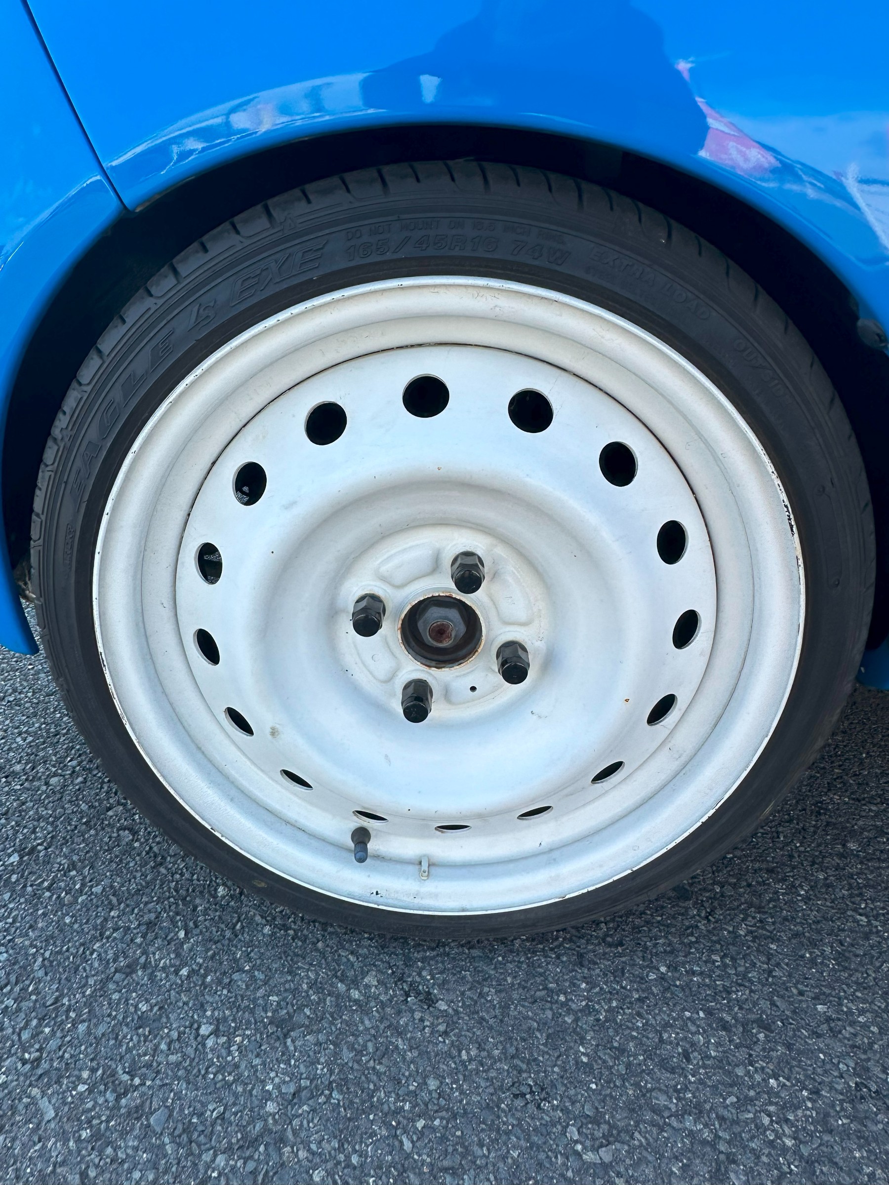 車体購入時に装着されていた特徴的な白ホイールですが・・