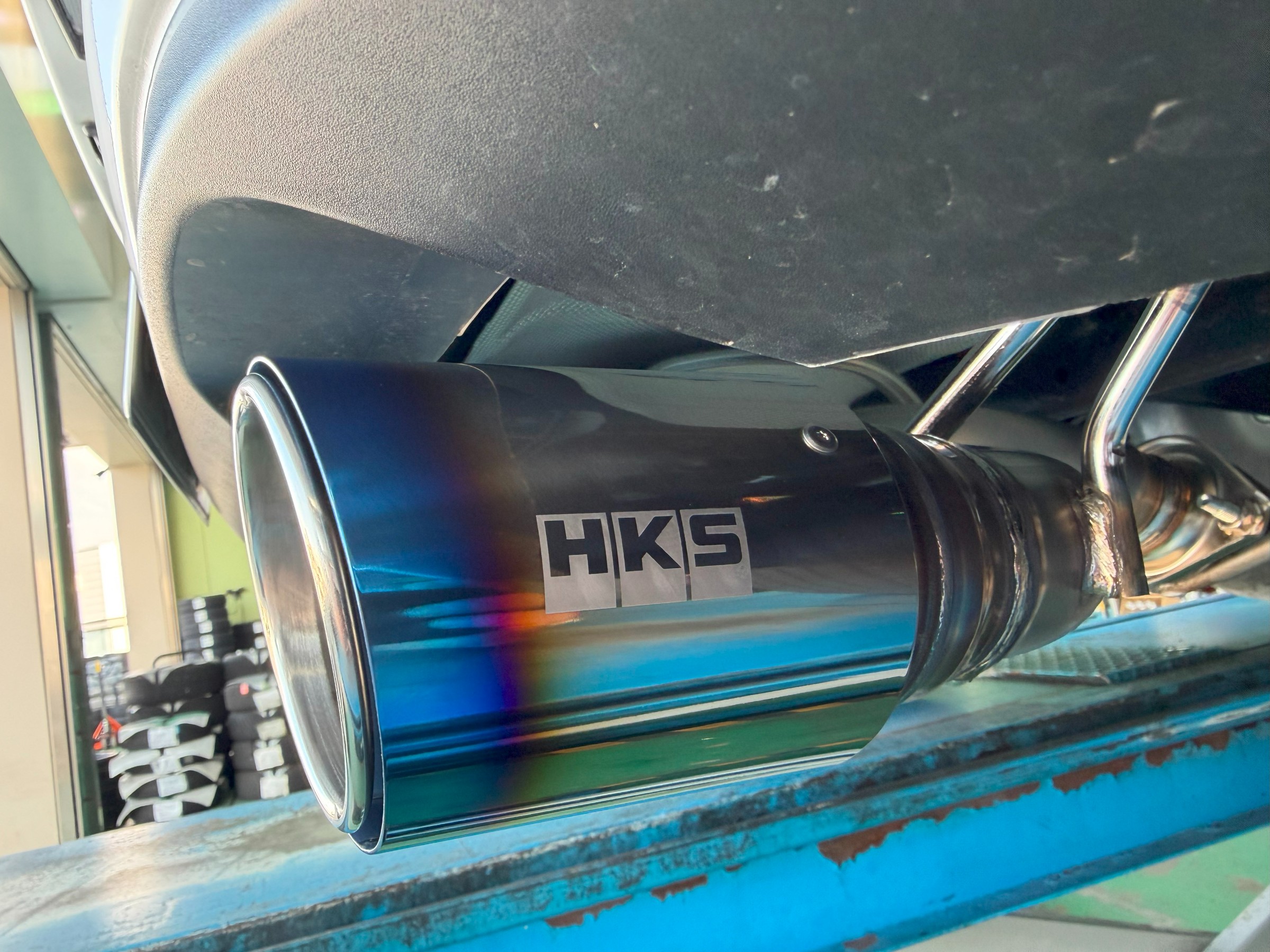 マフラー出口はHKSロゴ入りのチタンテール使用で見た目もスポーティです!