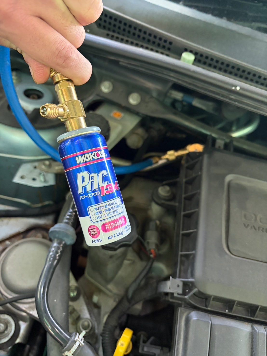 エアコンガスクリーニングさせて頂いた後にワコーズのパワーエアコンプラスを添加しました!