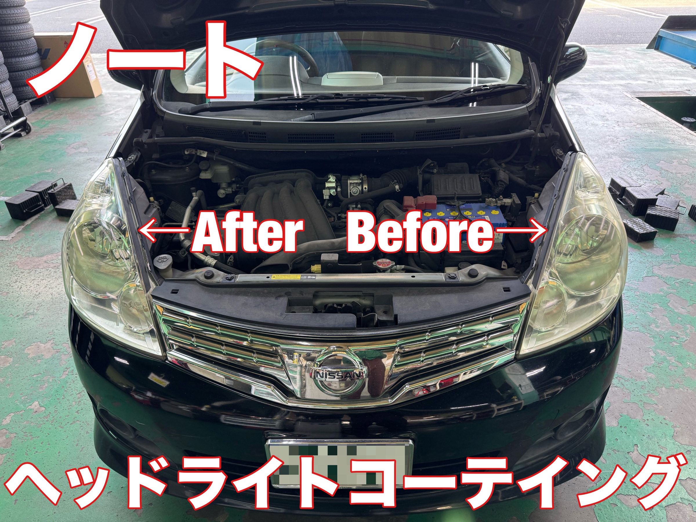 ノートのヘッドライトコーティング施工のご紹介!!