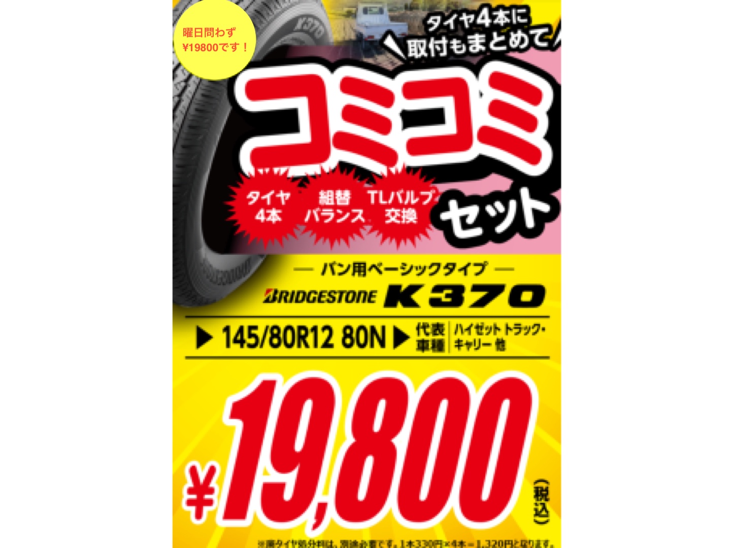 金土日限定!コミコミ価格!タイヤがお得になってます!!