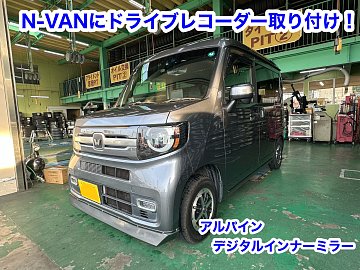 今回は、N-VANにドライブレコーダーを装着したので紹介いたします 装着前 レジャーでお車を使われるので、荷物を載せると後ろが見えにくいとの事なので・・・ アルパインのデジタルインナーミラーに交換いたしました! 車種専用モデルで10型のDVR-DM1046A-ICです。 これで後ろもくっきり見えますね...