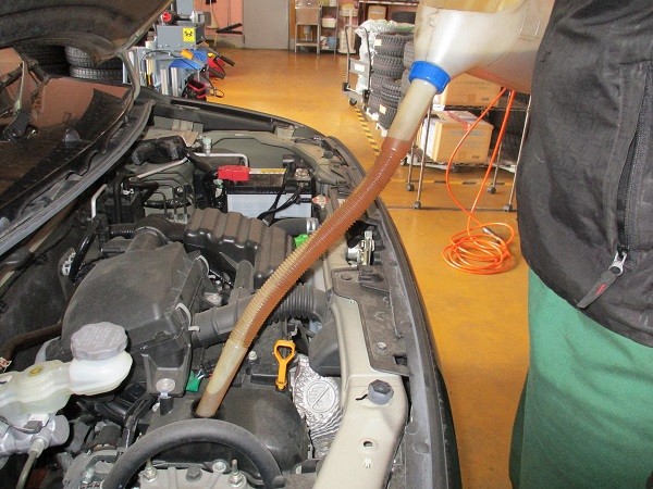 リフトを降ろして新しいオイルをゲージを確認しつつ入れ、締め忘れが無いかを確認して作業完了です!!