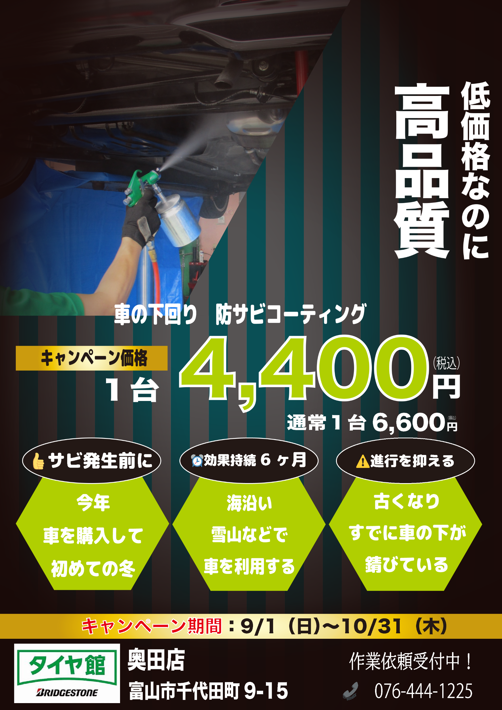 なので、冬前、融雪剤散布前の防錆コートをオススメいたします!