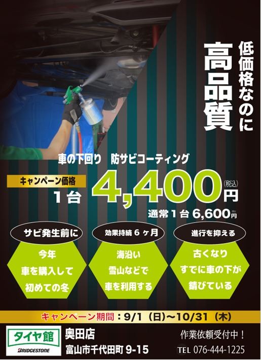 なので、冬前、融雪剤散布前の防錆コートをオススメいたします!