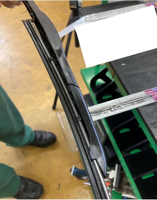 現状のワイパーゴムを引き抜き、新しいワイパーゴムを取り付けます