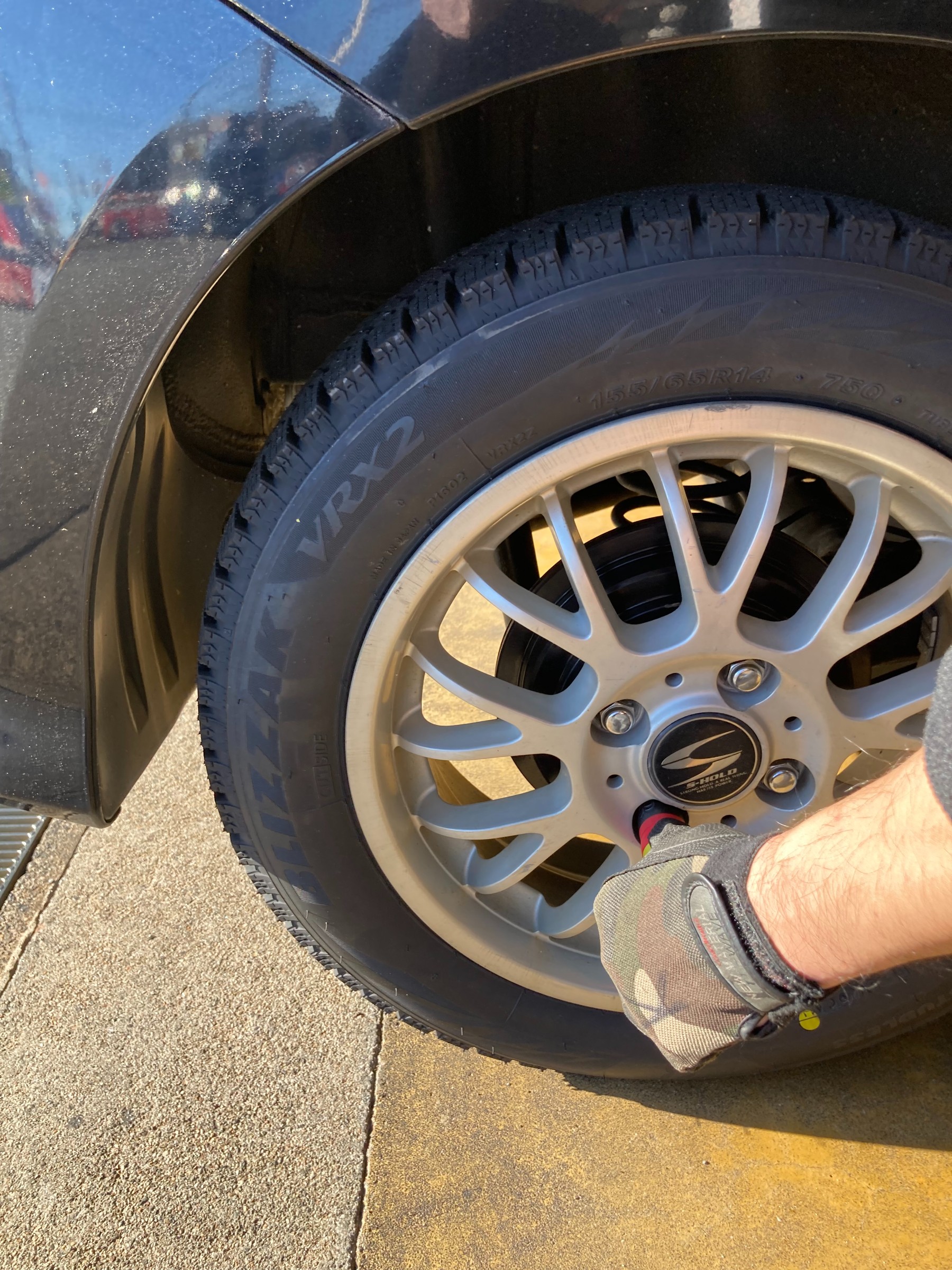 空気圧点検・ナットの増し締めをしています。