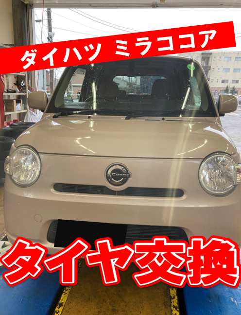 今回はダイハツ・ミラココアのタイヤ交換作業をご紹介☆
