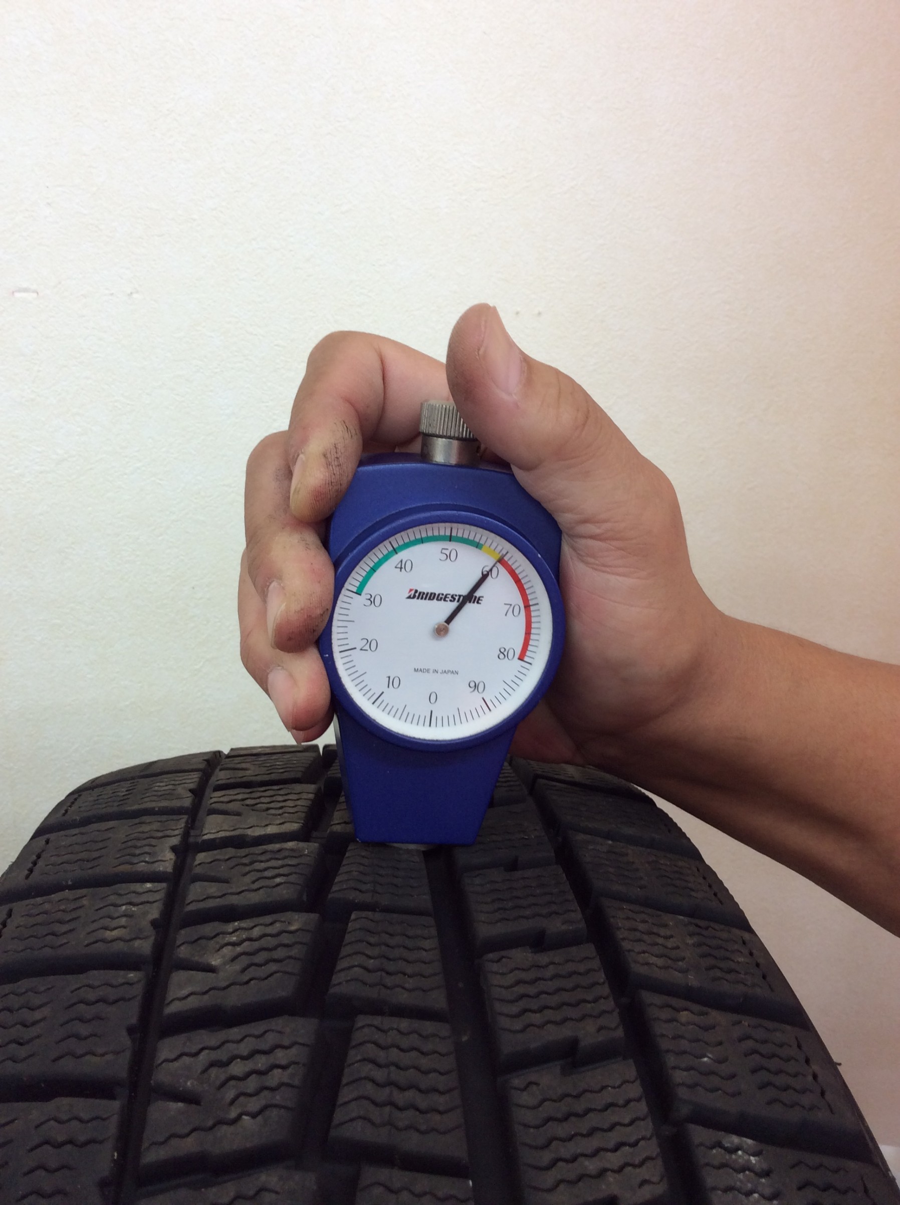 残り溝や外傷の有無、空気圧や冬タイヤについてはゴムの硬さなどの項目を点検しております。
