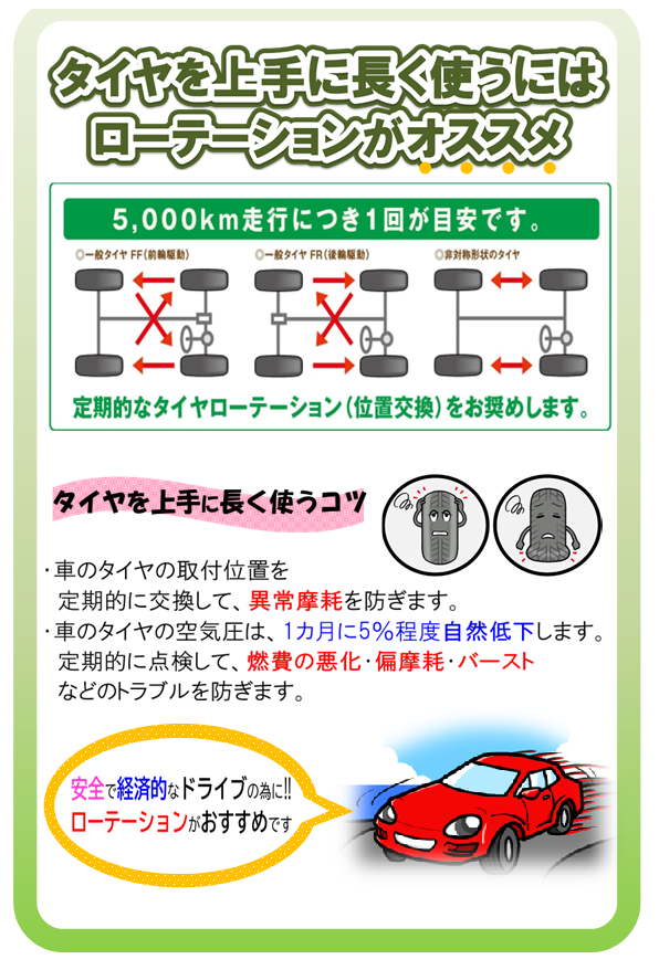 定期的なタイヤの位置交換をおすすめします。