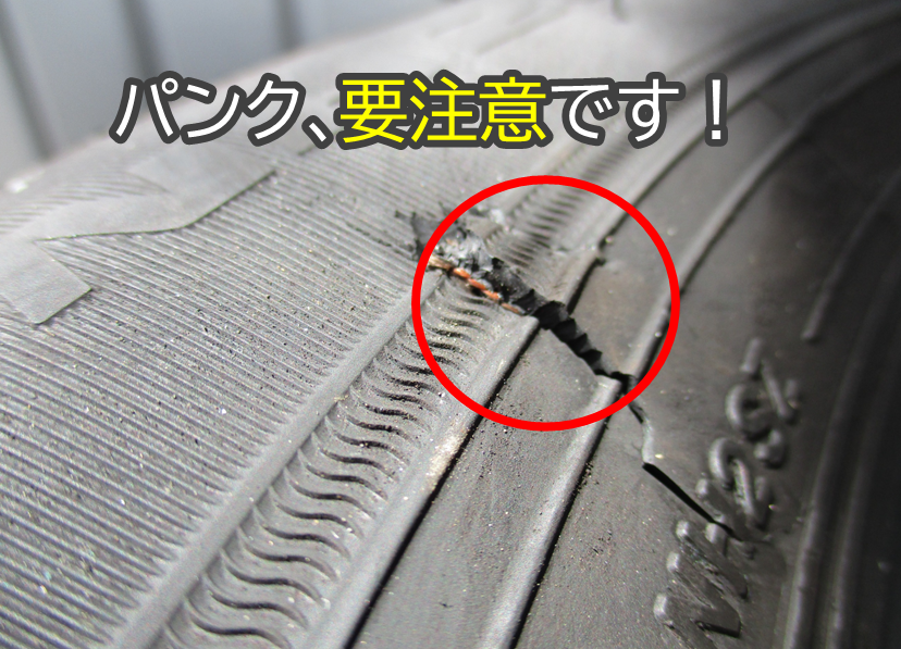 そのまま走行されると“バースト(破裂)”の可能性もあります。