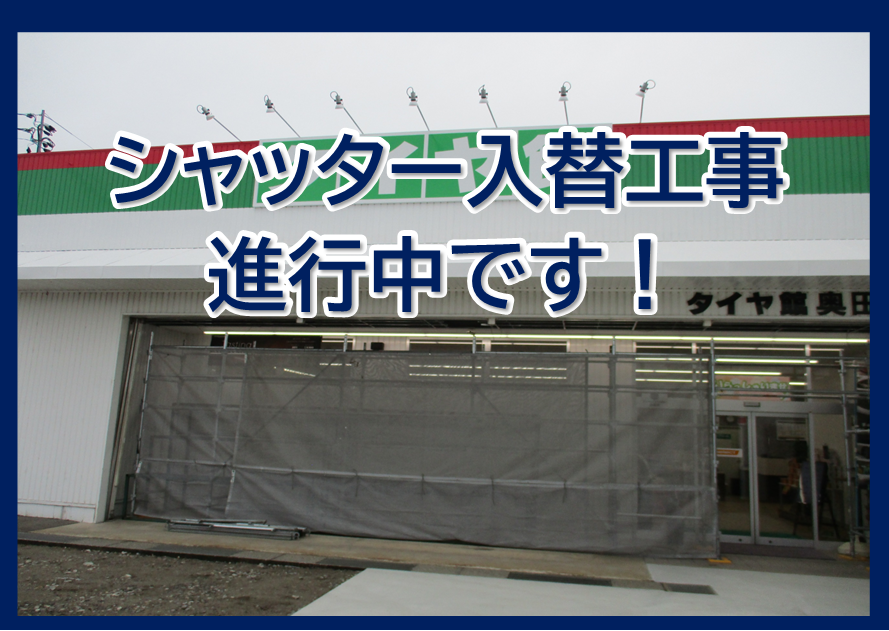 店舗入口シャッター入替工事 進行中です! ポスト 2025年10月14日 こんにちは! タイヤ館奥田店です!! 当店のHPをご覧いただきありがとうございます(*^^*) 昨日からシャッター入替工事が始まりました 工期は約1週間の予定です 期間中はご迷惑をおかけいたしますが、 何卒 ご了承くださいませ タイヤ館 奥田 住所:930-0811富山県富山市千代田町9-15 電話番号: 076-444-1225 カテゴリ:お知らせ