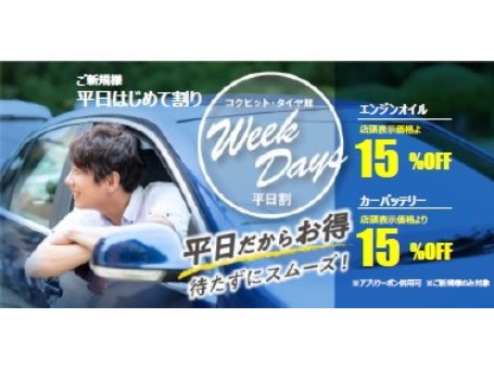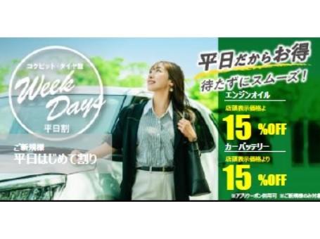 コクピット・タイヤ館は“平日”がお得!『平日割』実施中!