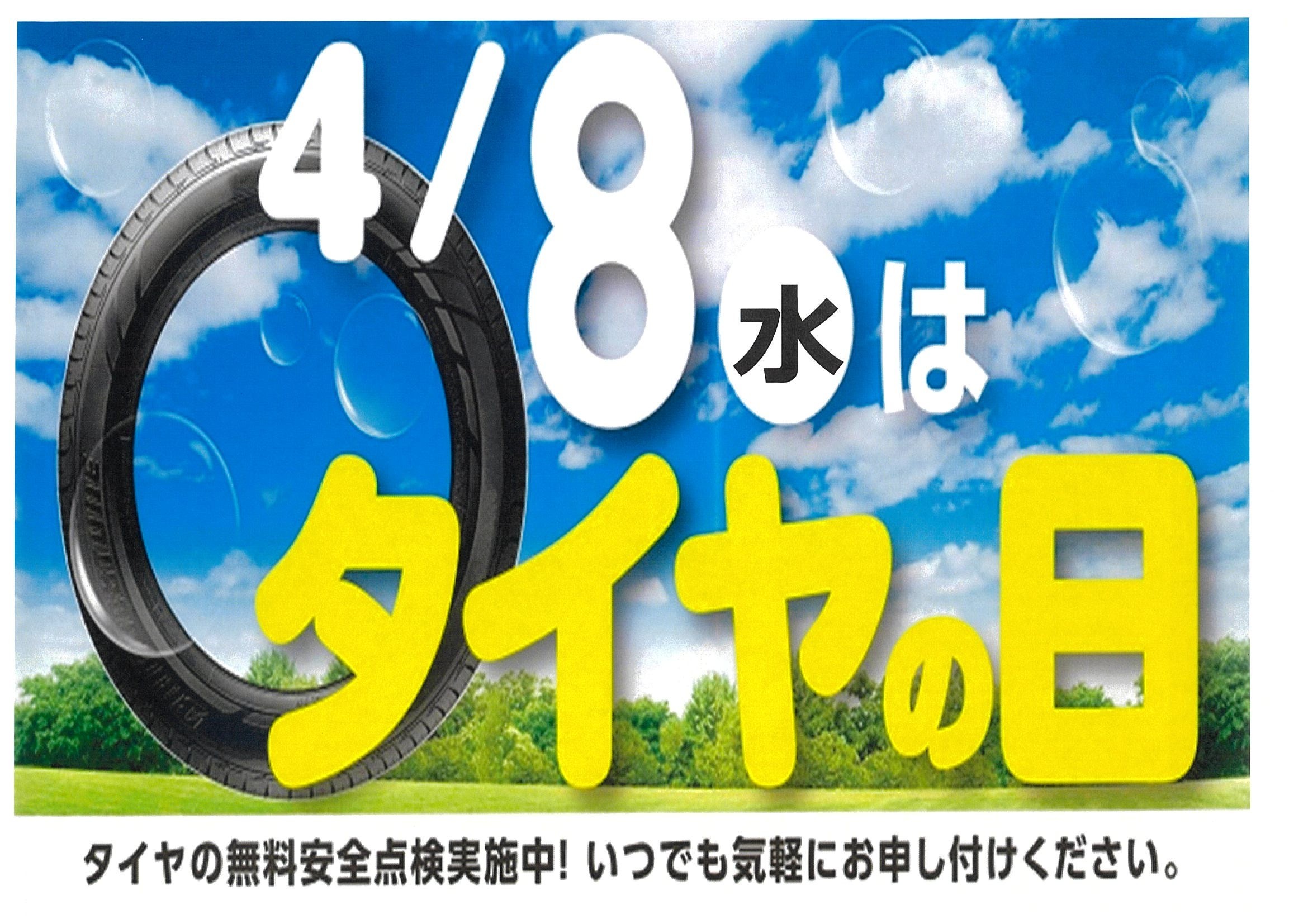 タイヤ館青梅 4月8日は営業 『タイヤの日』