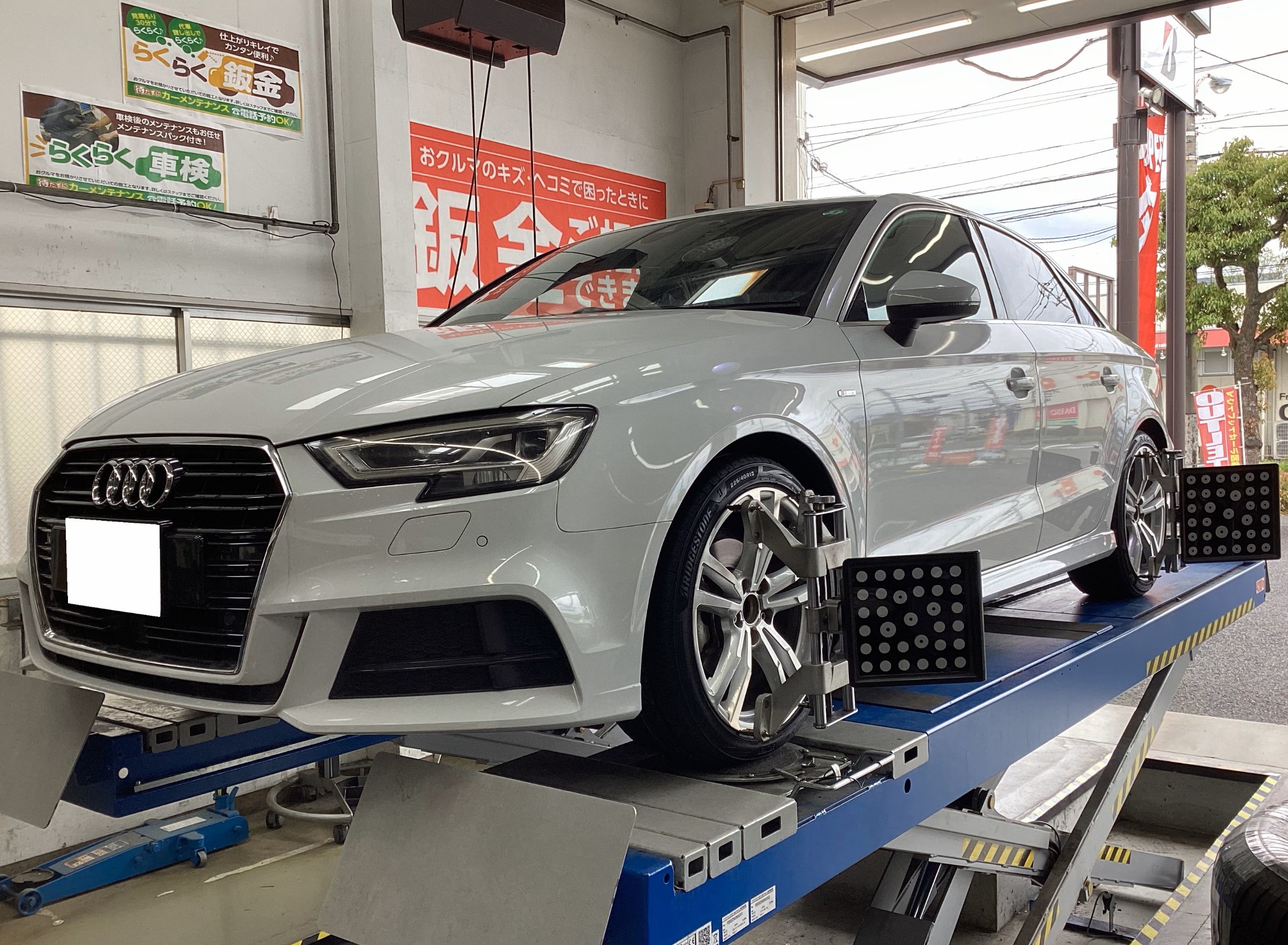 車好きなお客様のご来店!新車装着タイヤが摩耗していた為、車検前にタイヤの交換を行いました。もちろんタイヤ交換と一緒にアライメントも作業実施。